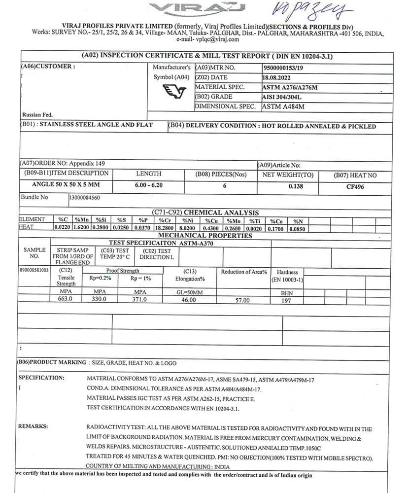 Уголок нержавеющий равнополочный горячекатаный матовый – поверхность проходит непременную дополнительную обработку методом травления, что придает ей привлекательный матовый оттенок серого цвета. Благодаря этому заготовки не имеют шероховатости.